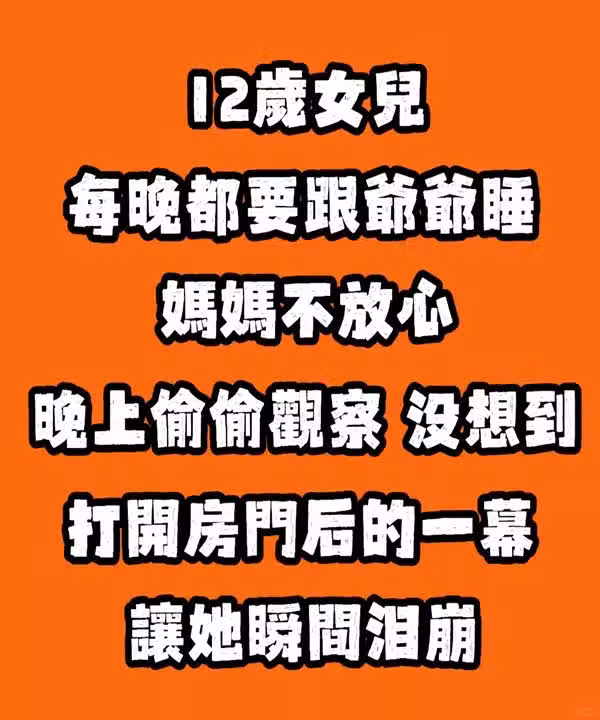 12歲女兒每晚都要跟爺爺睡,媽媽不放心晚上偷偷觀察,沒想到「打開房門後的一幕」讓她瞬間淚崩