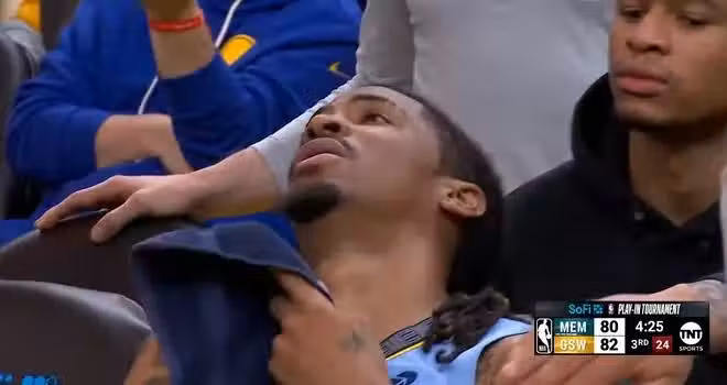 勇士面對灰熊的這場大戰,雙方前三節結束,金州勇士隊還是保持領先,但是最多曾經打出20分優勢的他們,三節之後的比分優勢已經只剩下3分了,而且莫蘭特還在比賽過程當中痛苦崴腳倒地,隨後現場在場邊吃止疼片,準備王者歸來。