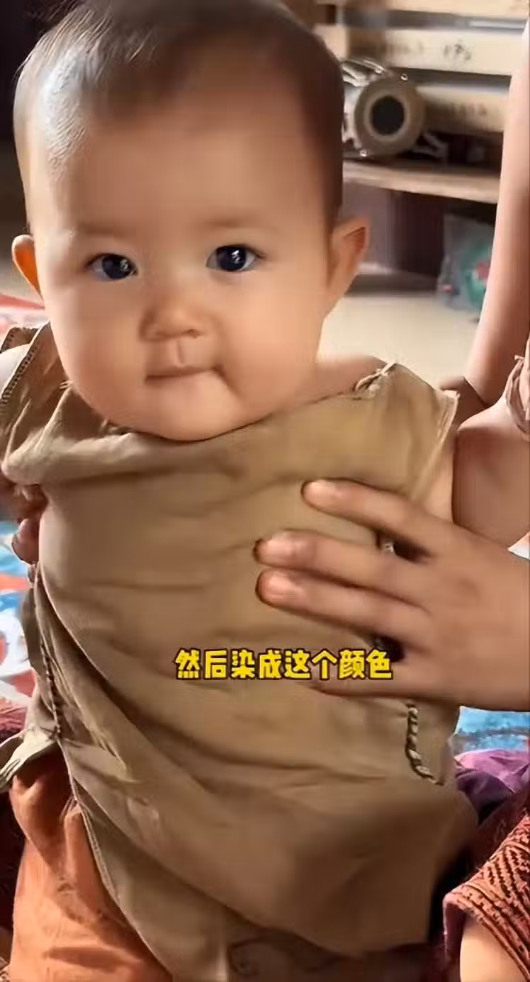 孩子的衣服看起來也很簡單,沒有花花綠綠,就像是一塊土黃色的布。