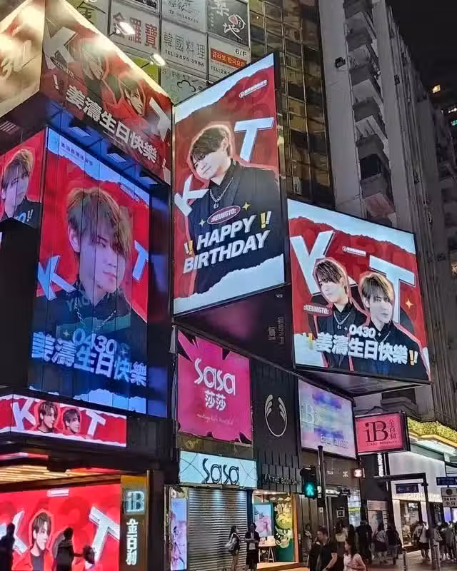 甚至連姜濤出現過的商場都不放過,得立上廣告牌,還有Q版公仔等,只要你能想到的應援方式,在銅鑼灣都能看到.....