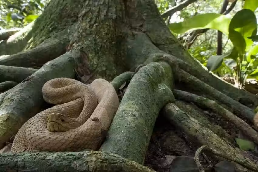 這個地方充滿了世界上最毒的蛇之一:金黃矛頭蝮蛇 (Golden Lancehead)。