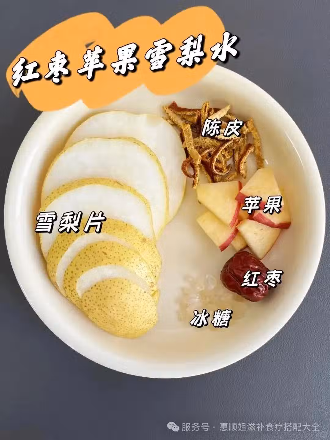 紅棗2顆、蘋果半個、雪梨半個、陳皮1克、適量冰糖