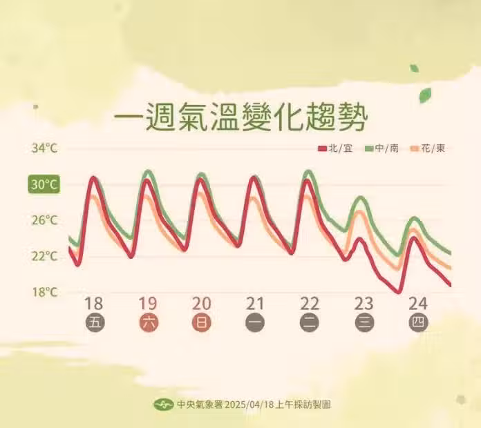 到了周三,一波較強的鋒面將逐漸接近並通過台灣,全島天氣將轉為不穩定型態,部分地區可能出現顯著降雨,同時也有冷空氣南下的可能性。