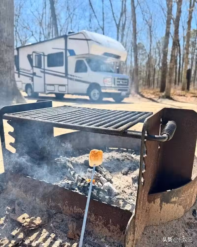 陳法拉一家四口開房車去露營享受家庭樂,曬4歲女兒烤棉花糖背影照