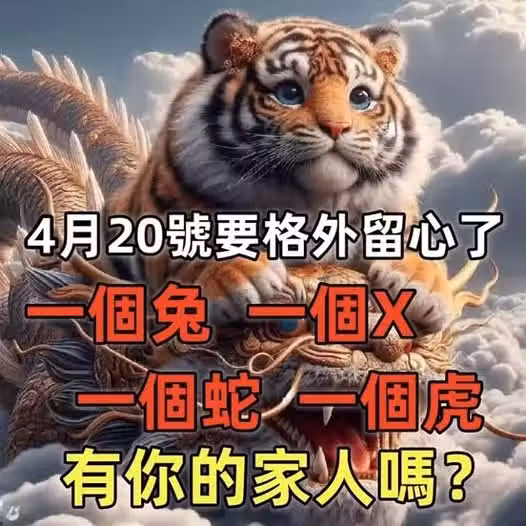 4月20號要格外留心了,一個兔,一個X,一個蛇,一個虎,迎來好運