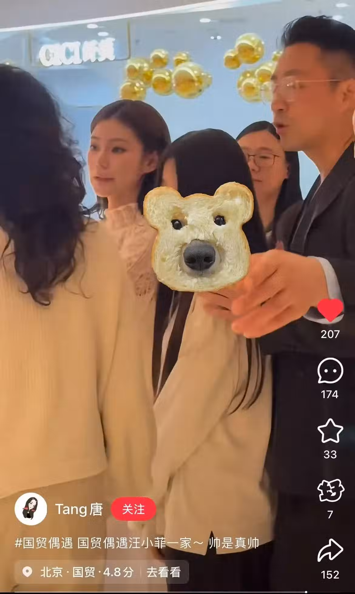 4月19日,有網友在北京國貿偶遇汪小菲一家五口。