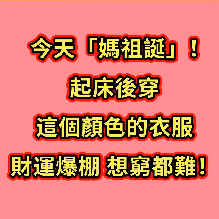 今天是媽祖下凡補福、穀雨降財的黃金好日子,穿錯衣服會斷運,穿對顏色能翻轉氣場、福報暴漲、橫財主動來找你!