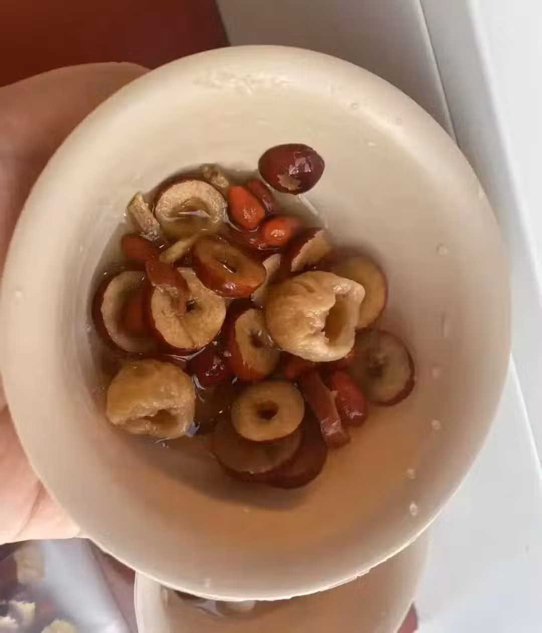 1️⃣ 紅棗洗凈,去核切片;枸杞和桂圓洗凈;