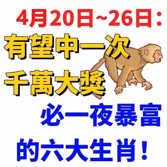 4月20日~26日:有望中一次千萬大獎,必一夜暴富的生肖
