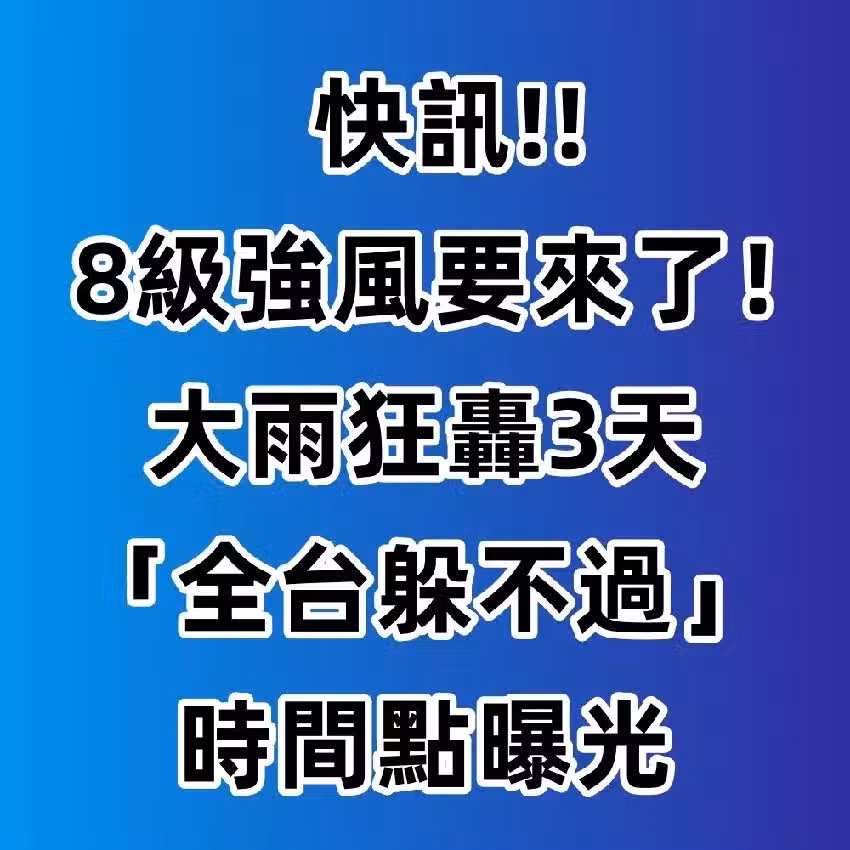快訊/8級強風連帶大雨狂轟三天「全台躲不過」時間點曝光