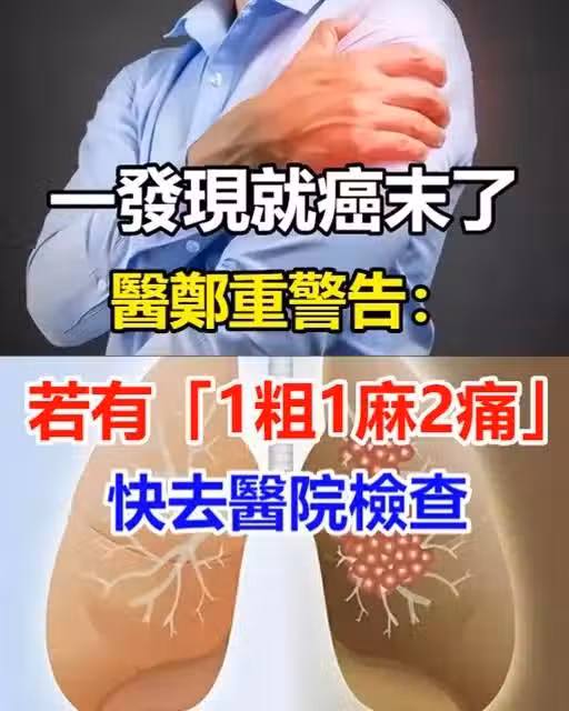 提醒:若有 「1粗1麻2痛」,趕快去醫院檢查! 肺癌前期症狀實在太不明顯,很多患者在前期幾乎像平常人,身體根本沒什麼特別的反應。