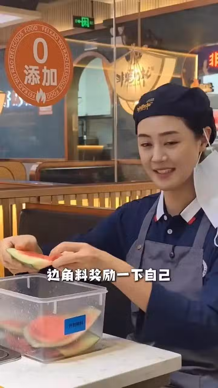 今天她在一間燒烤店打工,並安排她負責在後廚切西瓜,當然切西瓜也是普通的活,並沒有什麼難度。