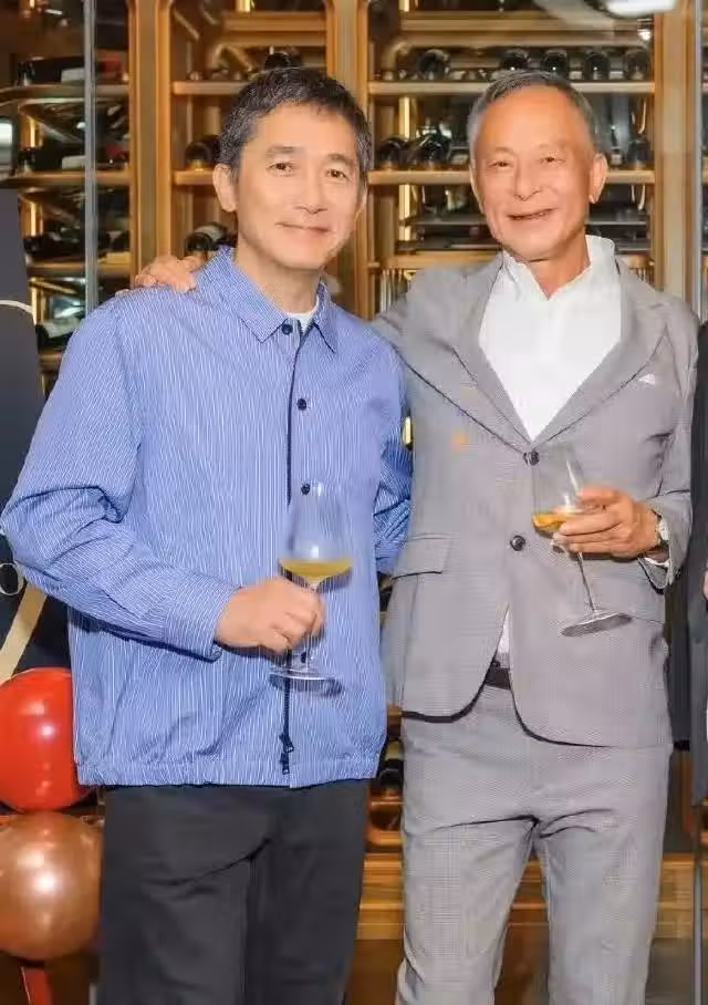 63歲梁朝偉參加派對,和周潤發同框,都有了白髮,看起來很有精神