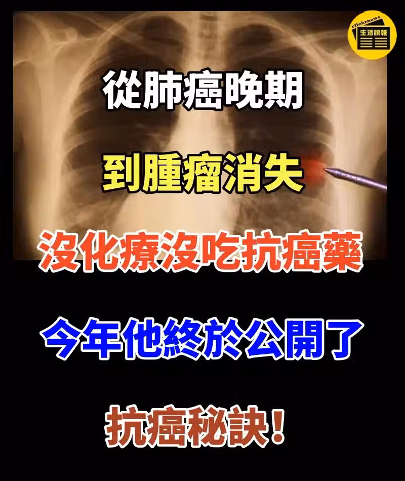 從肺癌晚期到腫瘤消失,沒化療沒吃抗癌藥,他終於公開了抗癌秘訣