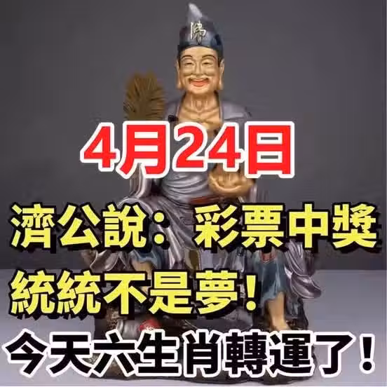4月24日濟公說:彩票中獎統統不是夢,就在今天六生肖轉運了!