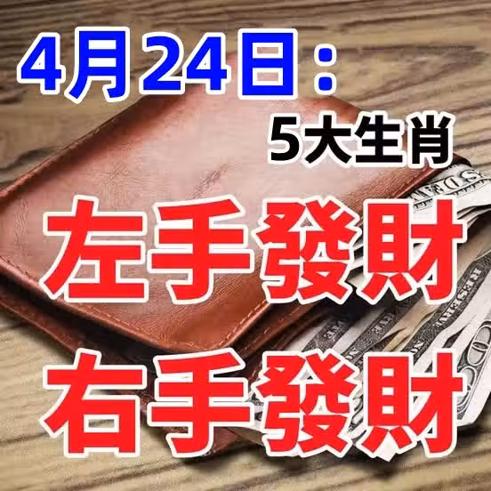 4月24日這一天,根據民間生肖運勢的說法,有幾個生肖可以說是「左手發財,右手發財,躺著也發財」——運氣好到炸!這些生肖在財運上會有爆發性的好運,不論是正財還是偏財,都有機會進帳滿滿。 來看看哪些幸運生肖上榜吧!