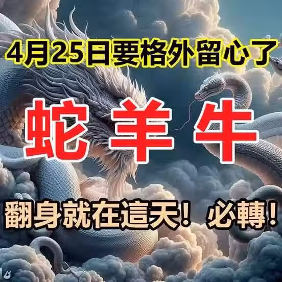(蛇,羊,牛)4月25日要格外留心了,翻身就在這天.
