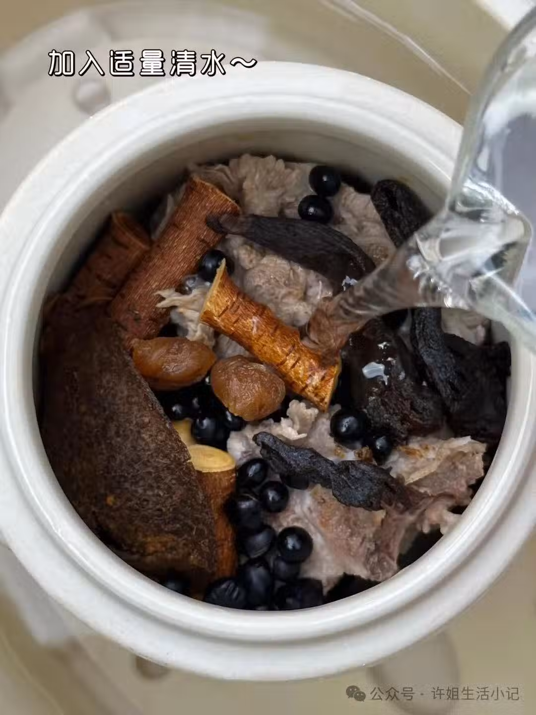 這個湯適合熬夜加班掉發、白髮多、怕冷,夜尿多、尿頻、腰酸痛、沒精神的朋友飲用。