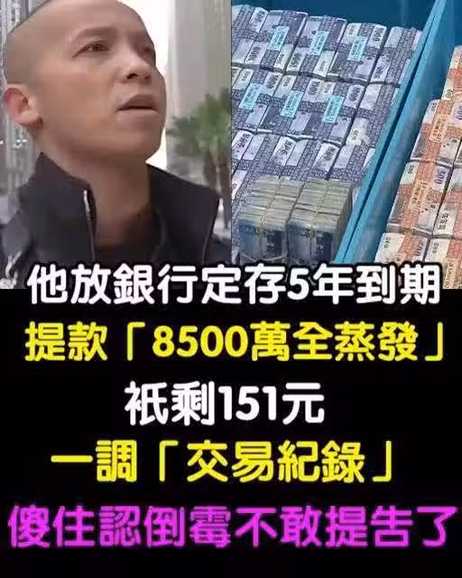 放銀行定存5年!他到期提款「8500萬全蒸發」只剩151元 一調「交易紀錄」傻住:不敢提告了!