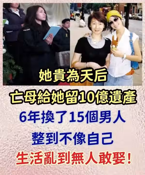 她貴為天后,亡母給她留下10億遺產,她6年內換了15個男人、整容整到不像自己,生活亂到無人敢娶!