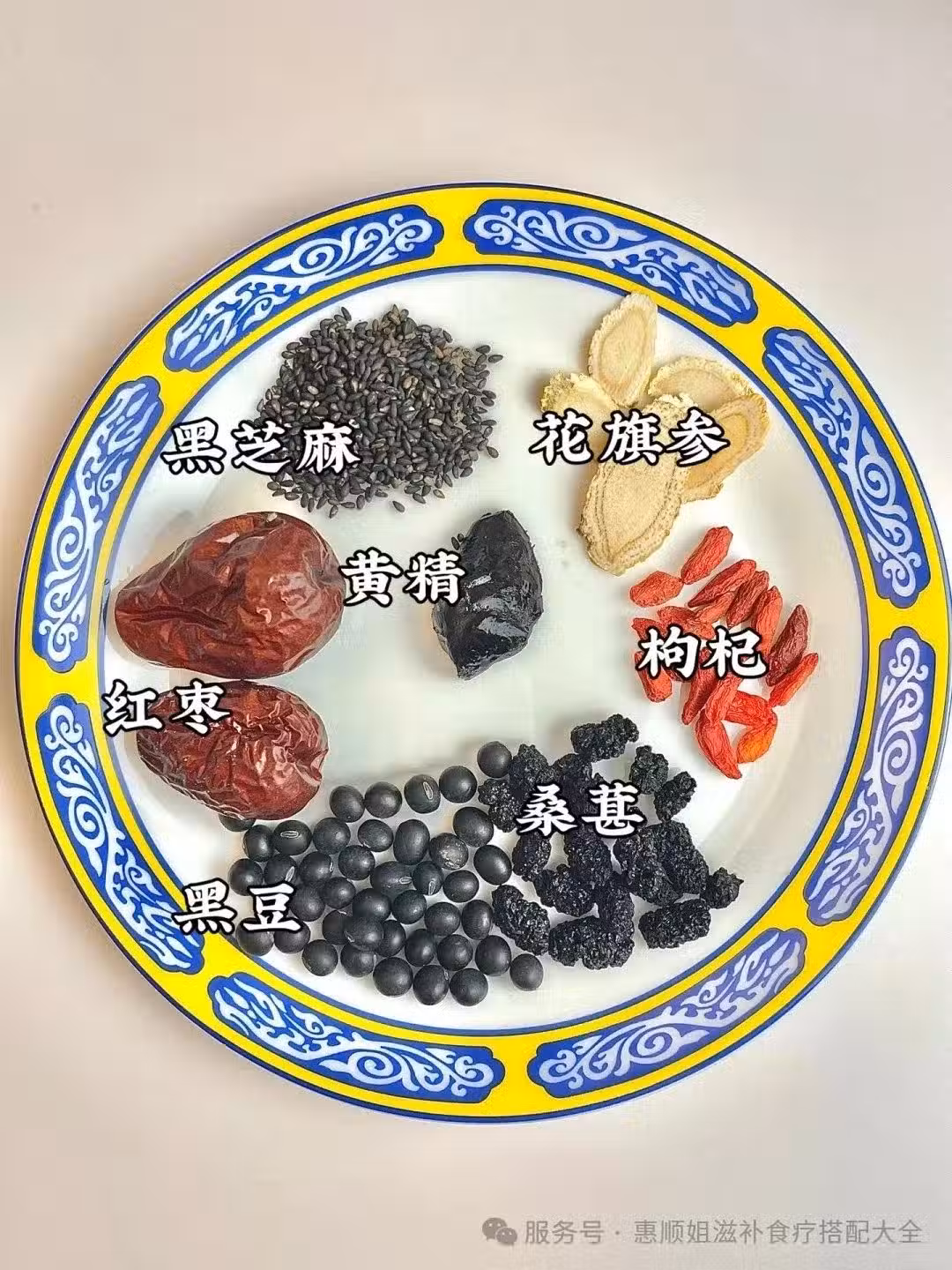 ✨食材:黑豆,桑葚,黑芝麻,枸杞,紅棗,黃精,花旗參