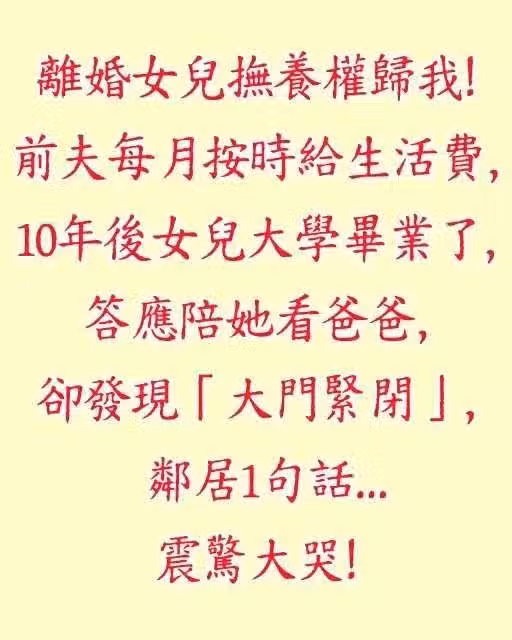 離婚女兒撫養權歸我!前夫每月按時給生活費,10年後女兒大學畢業了,答應陪她看爸爸...卻發現「大門緊閉」,鄰居1句話…震驚大哭!