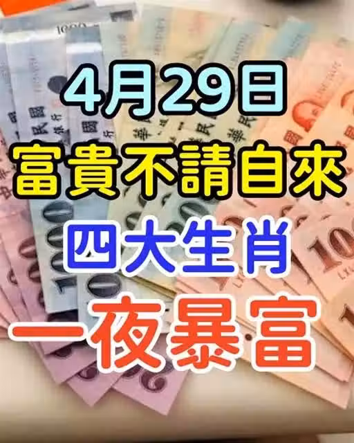 4月29日,吉星高照,財神降臨,屬牛、屬馬、屬狗、屬兔這四大生肖將迎來令人稱羨的一夜暴富良機!橫財連連,貴人相助,財源滾滾而來,想低調都難!只要順勢而為,努力把握機會,財富與幸福便會不請自來,讓人歡喜若狂!
