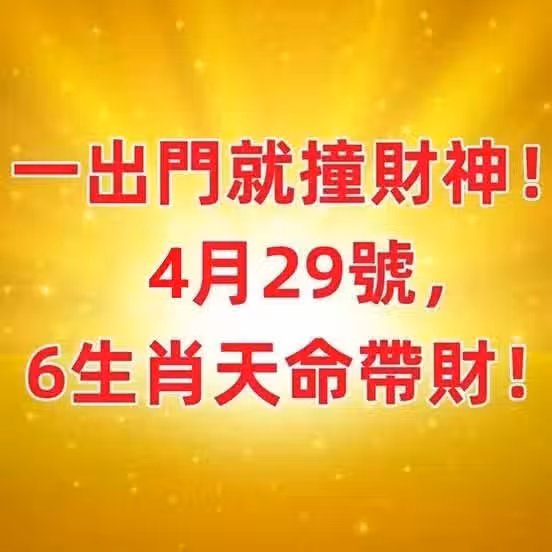 一出門就撞財神!一出門就撞財神!4月29號,六生肖天命帶財!號,六生肖天命帶財!