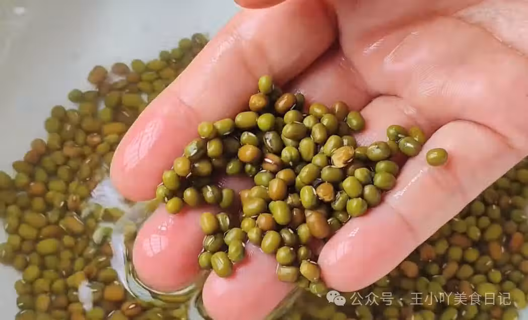 清洗綠豆:首先,將準備好的綠豆放入盆中,倒入足夠的清水。用手輕輕地在水中攪拌綠豆,讓它們在水中翻滾,這樣可以將綠豆表面的灰塵和髒東西洗去。可以多換幾次水,直到水變得清澈為止。洗凈後,將綠豆控水撈出,直接放入鍋中。