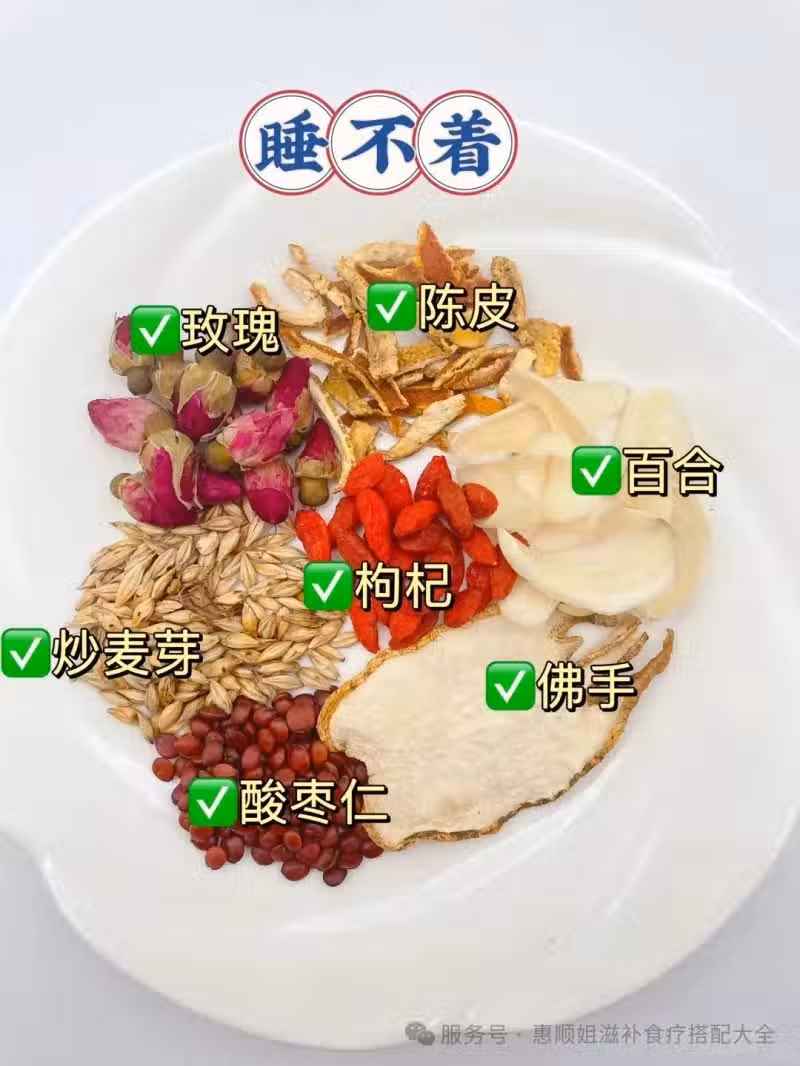 食材:酸棗仁10克、佛手3克、陳皮3克、百合10克、枸杞6克、玫瑰2朵