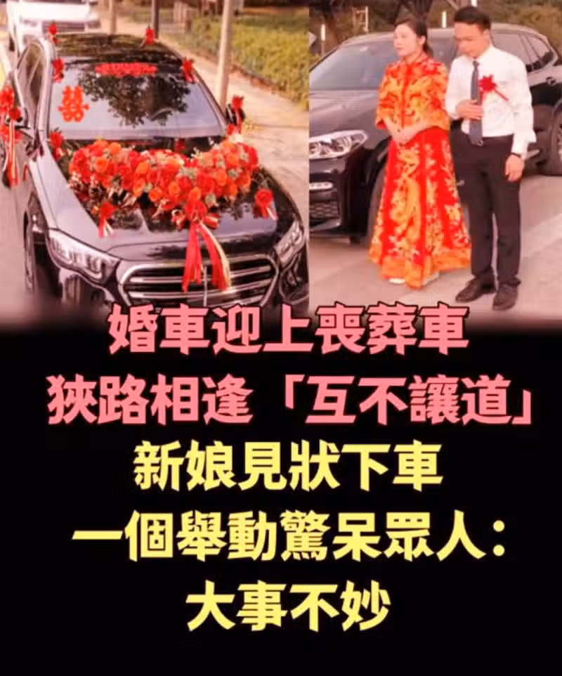 「婚車迎上喪葬車」狹路相逢「互不讓道」,新娘見狀下車 ,一舉動驚呆眾人:大事不妙!!