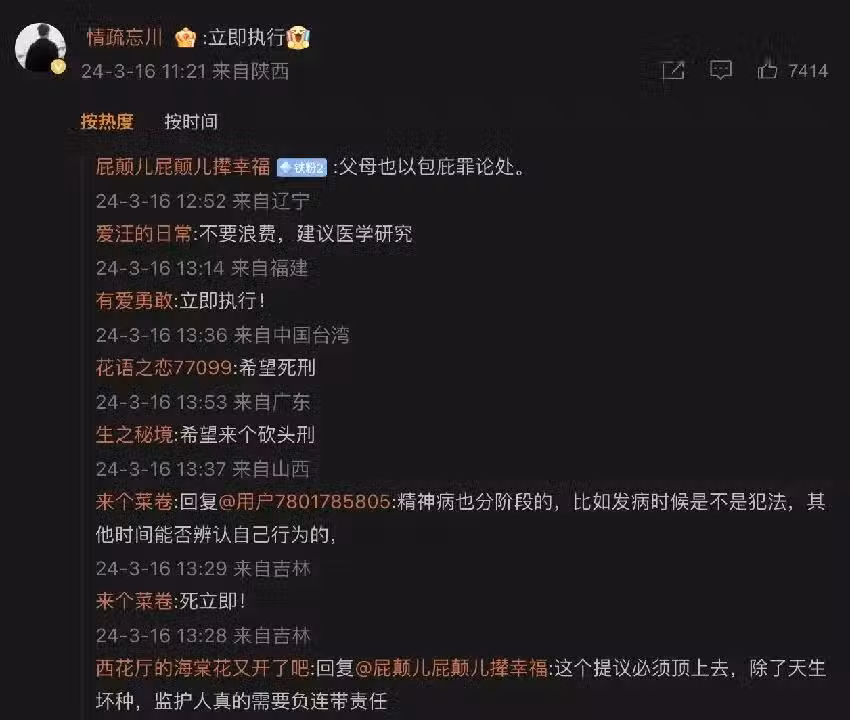 該事件引起社會極大討論,網友更呼籲一定要嚴懲,更有不少人認為有死刑的必要,「立即執行死刑!家屬等不了!」「必須嚴懲,不能放過他們!否則青少年都可能模仿。」「潛在的霸凌者都在看著,等著結果」