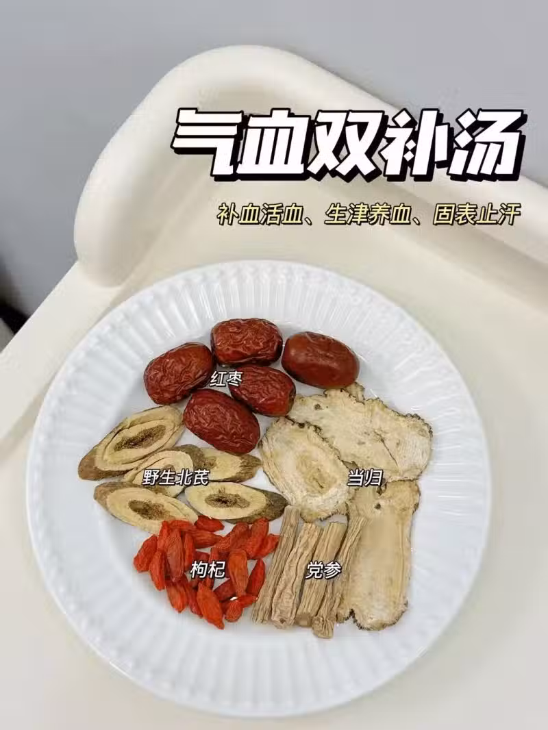 食材:黨參5克、北芪5克、當歸2克、紅棗3顆、枸杞5克