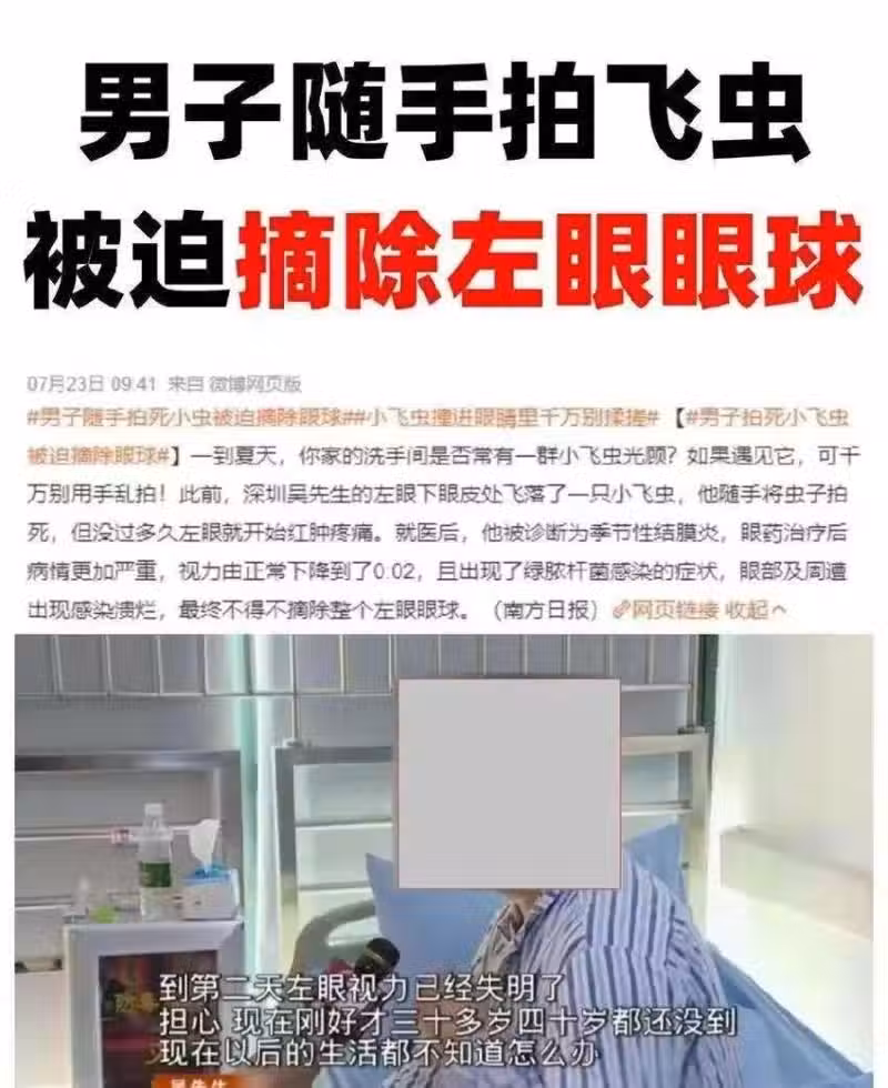 刷到一條新聞說,一隻蛾蚋飛停在一男子的眼皮處,這位男子「啪」 地一下,用手直接將這隻蟲子給拍死了。