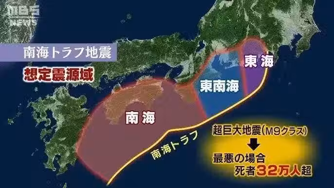 2025年最新評估,南海海槽在未來30年內發生8至9級地震「特大地震」的機率,上調至今年的75%至82%。