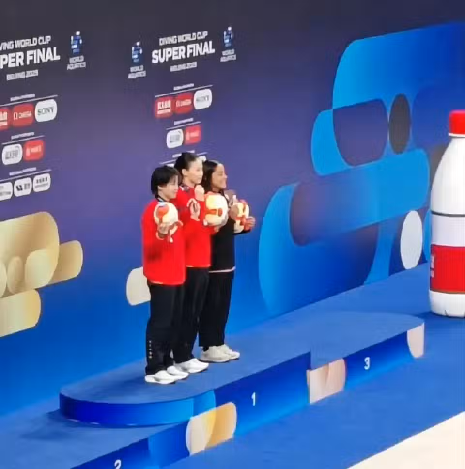 在2025年5月3日的世界泳聯跳水世界盃總決賽(北京站)舞台上,20歲的陳芋汐用無可挑剔的表現,完成了屬於自己的榮耀時刻。她以431.25分的總成績摘得女子單人10米台冠軍,力壓隊友全紅嬋,繼混合團體、雙人10米台奪冠後,成為本屆賽事的「三冠王」,也在跳水史上留下濃墨重彩的一筆。