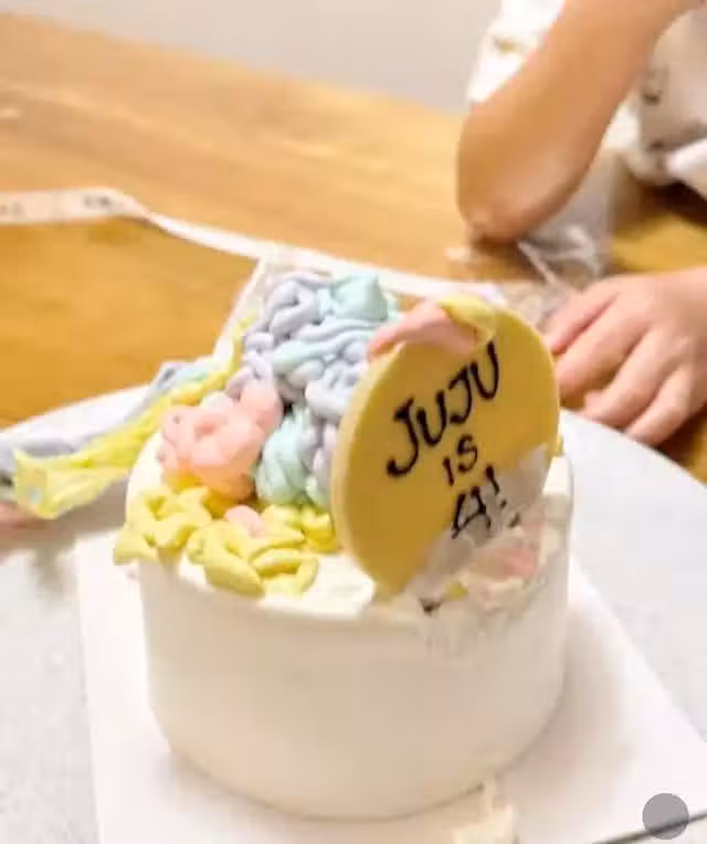 在父母的引導下,小壽星也是親自切了蛋糕,看得出他一開始有些不好意思,但是沒一會兒就樂開了花,或許對著鏡頭多少都有些害羞。