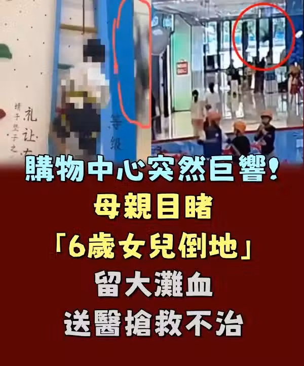然而就在下一秒,畫面的邊邊角角卻拍到,一個物體迅速地向下墜落,仔細一看才發現,那是一名6歲的女童,墜地後發出巨響,不少人都嚇到,還有孩子因此而大哭不止,場面怵目驚心。