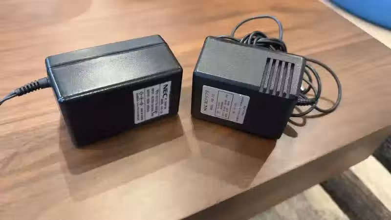 「想請問各位懷舊遊戲的玩家們,像圖中這種類型的變壓器,電源線的部分應該怎麼保存比較安全呢?因為我手邊這兩條的根部已經彎折到搖搖欲墜了……希望大家可以提供意見!」