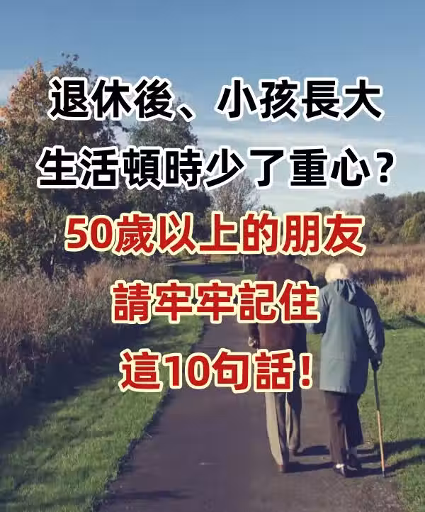 退休後、小孩長大,生活頓時少了重心?50歲以上的朋友,請牢牢記住這10句話