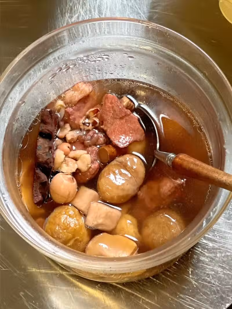 五指毛桃:健脾補肺、行氣利濕、舒筋活絡的功效,其獨特的椰香還能為湯品增添風味。赤小豆:利水消腫、解毒排膿,對於體內濕氣重、水腫等問題有一定改善,薏米:可健脾止瀉、除痹、排膿、解毒散結的作用,但體質虛寒者不宜過多食,土茯苓:解毒、除濕、通利關節的功效,常用於治療濕熱瘡毒、關節疼痛,茯苓:寧心,有助於調節脾胃功能,改善睡眠,板栗:補腎強筋、活血止血。無花果:有清熱生津、解毒消腫的效果,芡實:有益腎固精、健脾止瀉、除濕止帶,對脾胃虛弱和腎虛,蓮子:益腎澀精、養心安神的,