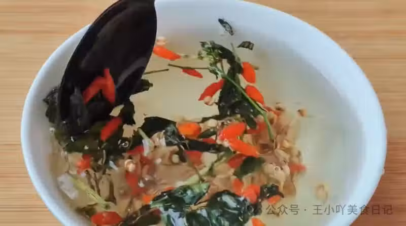 在平時,當我們想要享用這道養生佳品時,只需從密封容器中取出適量車前草薏米放入碗中,再加入少許枸杞。接著,倒入滾燙的開水,讓開水充分激發出食材的營養成分。用勺子輕輕攪拌均勻,稍微放置一會兒,待水溫稍稍放涼,就可以品嘗了。