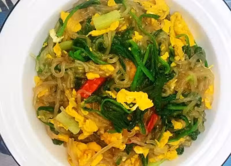 4、把芹菜和胡蘿蔔丁放入鍋中去,焯水2分鐘撈起放入花生米的盤中,把干辣椒放入,依據自己口味加入醋、生抽、蚝油和香拌勻即可。