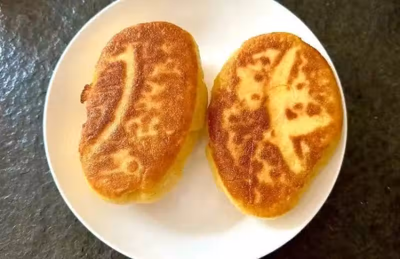 5、預熱平底鍋,加入量的油,將發酵好的餅子放入鍋中,用小火慢慢烙制,兩面金黃即可。