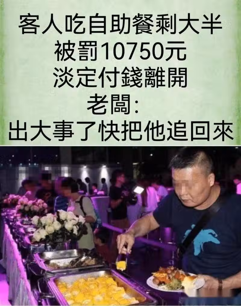 客人吃自助餐剩大半,被罰10750元,淡定付錢離開,老闆:出大事了,快把他追回來...