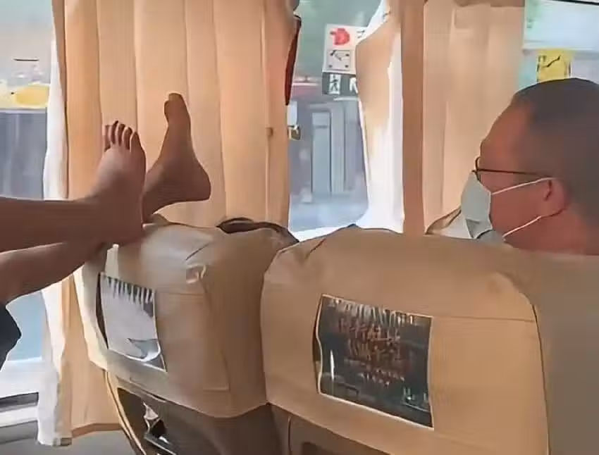 根據目擊者描述,這名男子在沒有任何顧忌的情況下,將雙腳脫鞋後伸展至前排座椅的椅背上,整個腳丫子正好懸在她的頭頂上,散發出陣陣臭味。