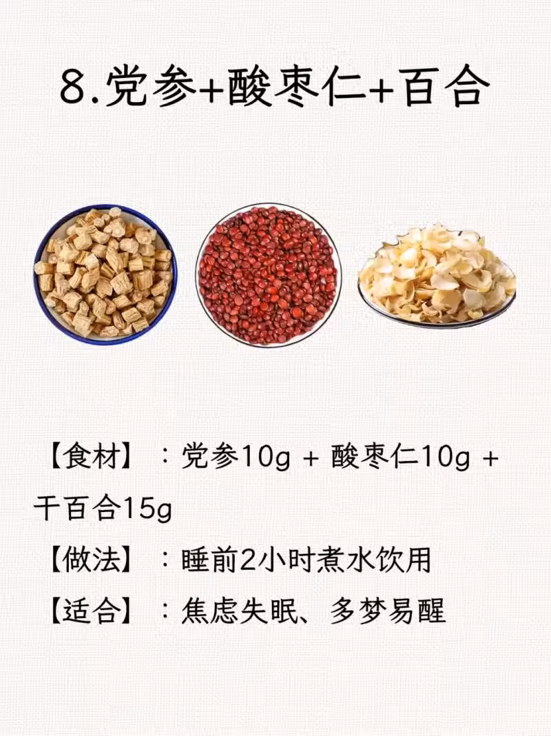 8. 黨參+酸棗仁+百合:安神助眠,改善失眠多夢