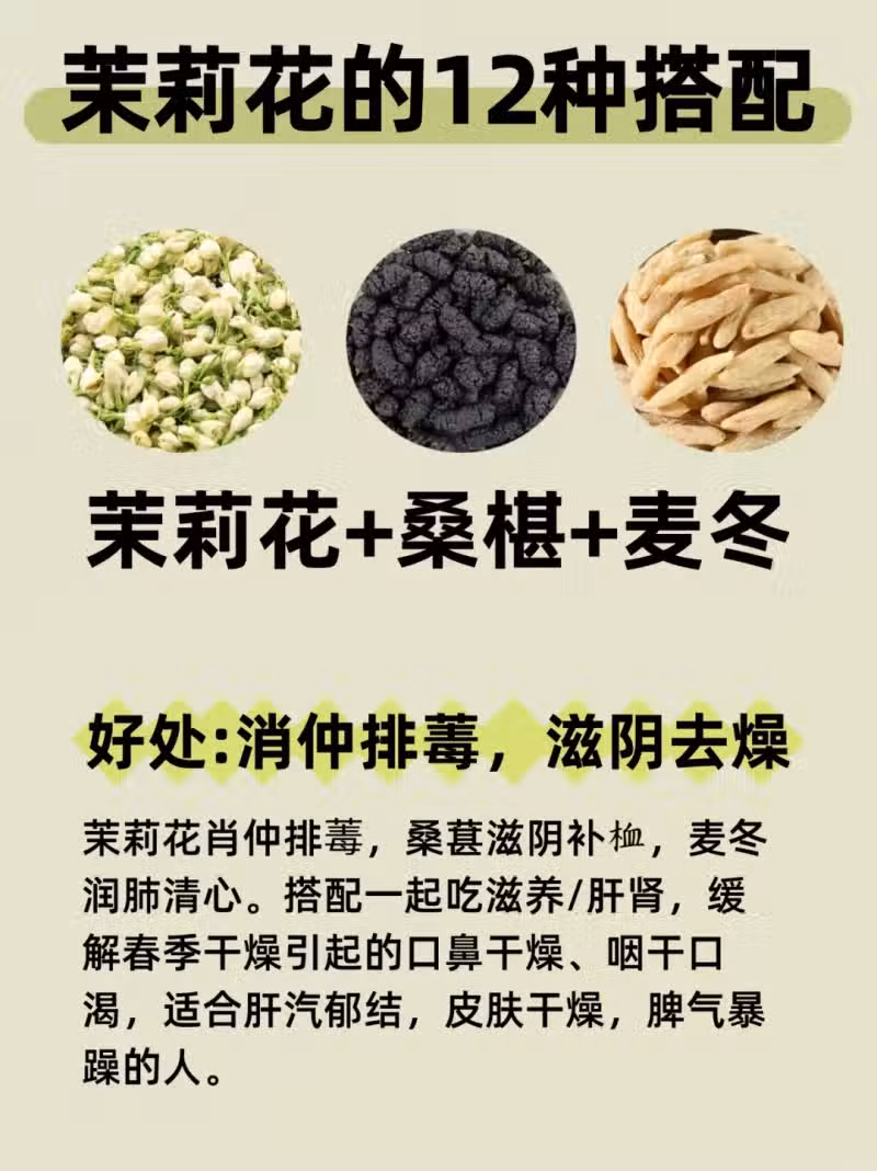 9.3克茉莉花+6克桑椹+6克麥冬