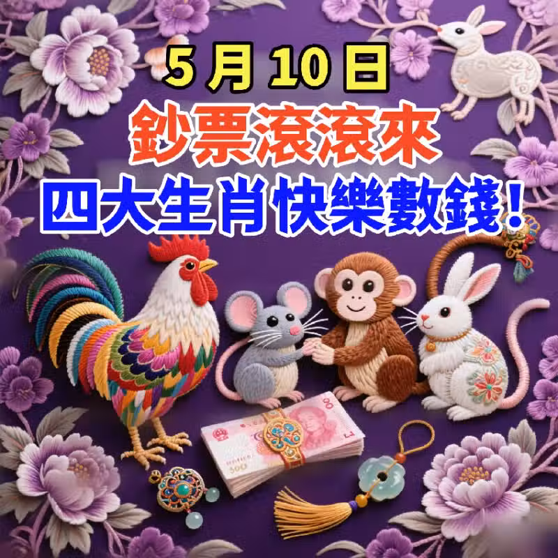 5 月 10 日,鈔票滾滾來,四大生肖快樂數錢