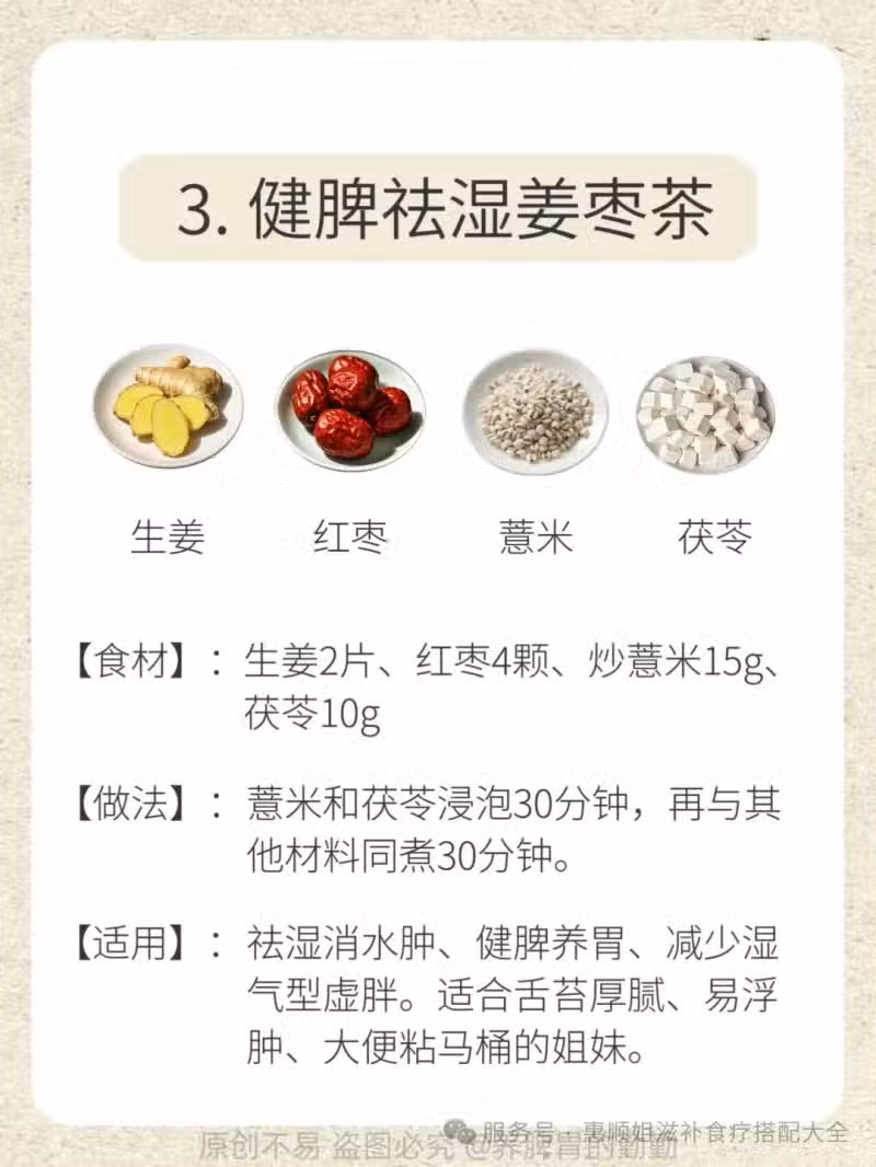 健脾祛濕姜棗茶(舌苔厚膩、易浮腫)